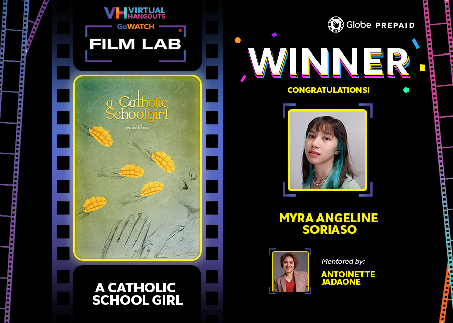 Myra Angeline Soriaso’s ‘A Catholic Girl’ has won the Best Pitch at Globe Prepaid’s GoWATCH Film Lab. She will receive a 3-day film set immersion in one of ANIMA’s film shoots, a script development consultation with a mentor, and a seed grant worth 200,000 pesos.
