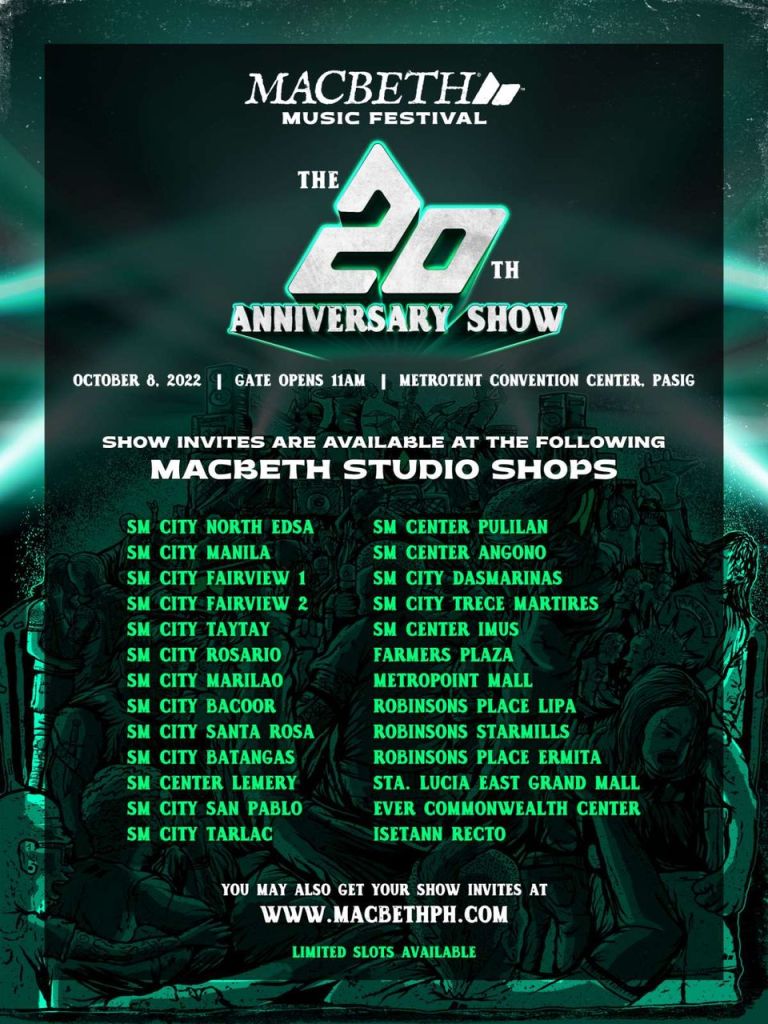 Save the date as the Macbeth brand celebrates its 20th Anniversary Show through a fashion show and concert in one! Join your favorite bands this Saturday, October 8, at Metrotent Convention Center, Pasig City, for one day of festivities with music, arts and denim.