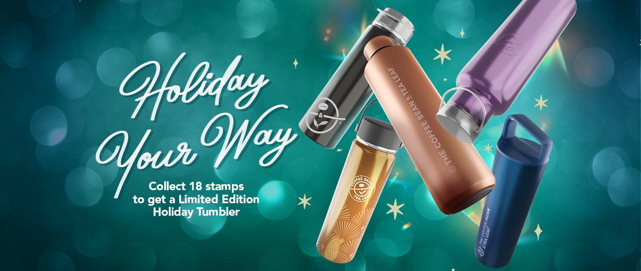 Stamp collecting season at The Coffee Bean & Tea Leaf has started. Make your Christmas season extra special by collecting the NEW Limited Edition Holiday Tumblers in five sleek designs: Moonwalk, Gold Dust, Champagne, Purple Dream, and Meteor.