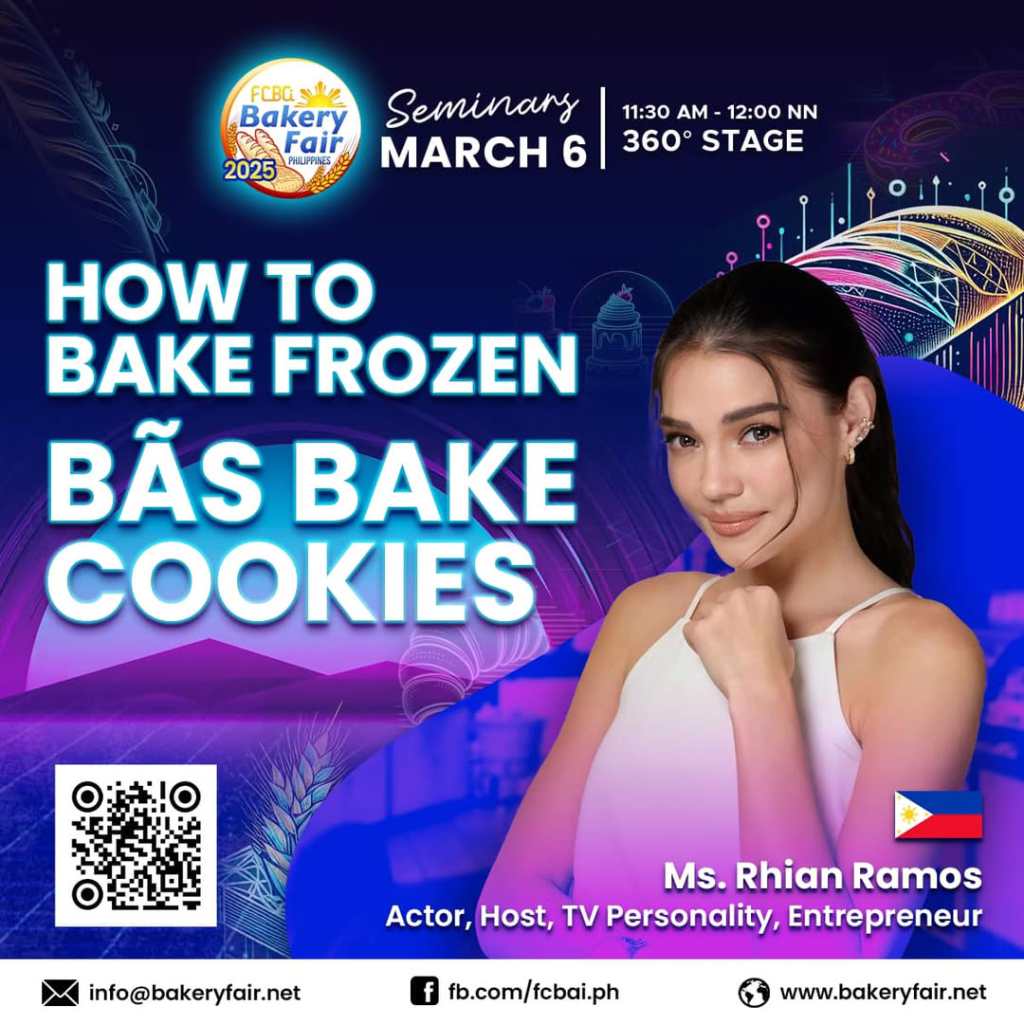 Kapuso actress Rhian Ramos is set to take the spotlight at Bakery Fair 2025 with a special baking demonstration of frozen Bas Bake Cookies on March 6 at 11:30 AM. Taking place at the World Trade Center in Manila, her showcase is one of the key highlights of the highly anticipated three-day event, which runs from March 6 to 8.