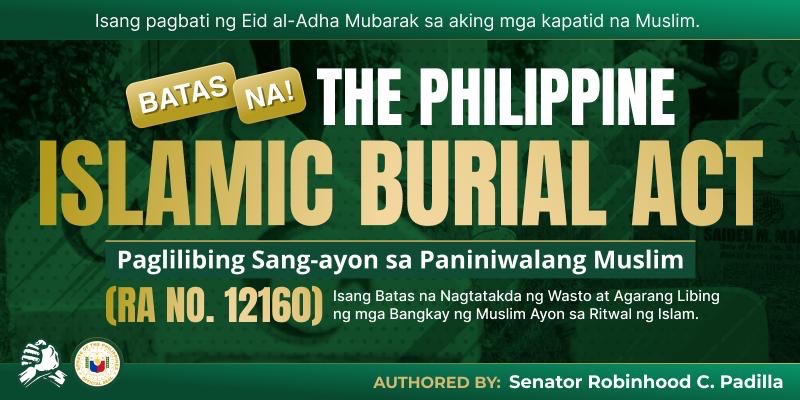 The swift and dignified burial of OPM icon Freddie Aguilar has drawn attention to the recent enactment of the Philippine Islamic Burial Act, a law authored by Senator Robin Padilla that protects the religious funeral practices of Filipino Muslims.