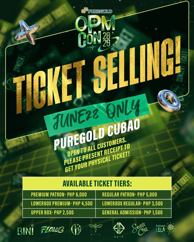 Puregold is set to open one last round of ticket sales for OPM Con 2025 following overwhelming public demand. The much-awaited music event, scheduled for July 5, will showcase top OPM acts including SB19, BINI, Flow G, Skusta Clee, KAIA, G22, and SunKissed Lola.